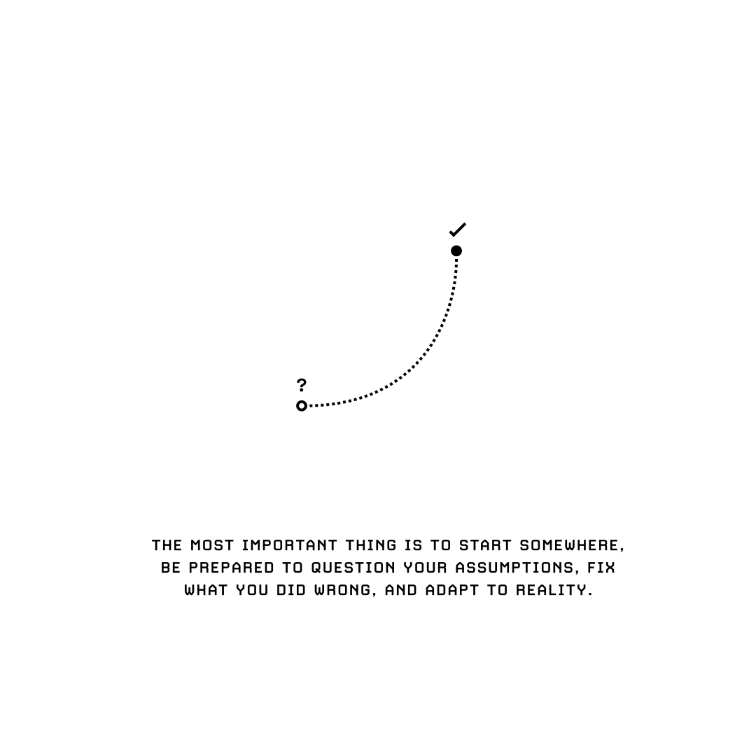 The most important thing is to start somewhere, be prepared to question your assumptions, fix what you did wrong, and adapt to reality.497