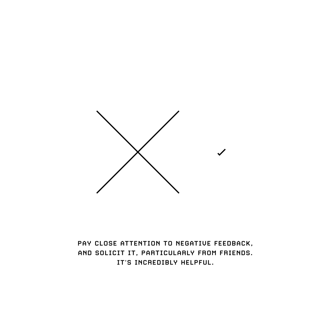 Pay close attention to negative feedback, and solicit it, particularly from friends. It’s incredibly helpful.