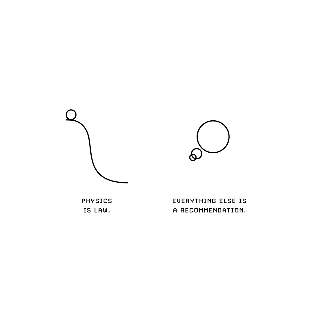 Physics is law. Everything else is a recommendation. I’ve met many people who can break the laws of man, but I have never met anyone who could break the laws of physics.