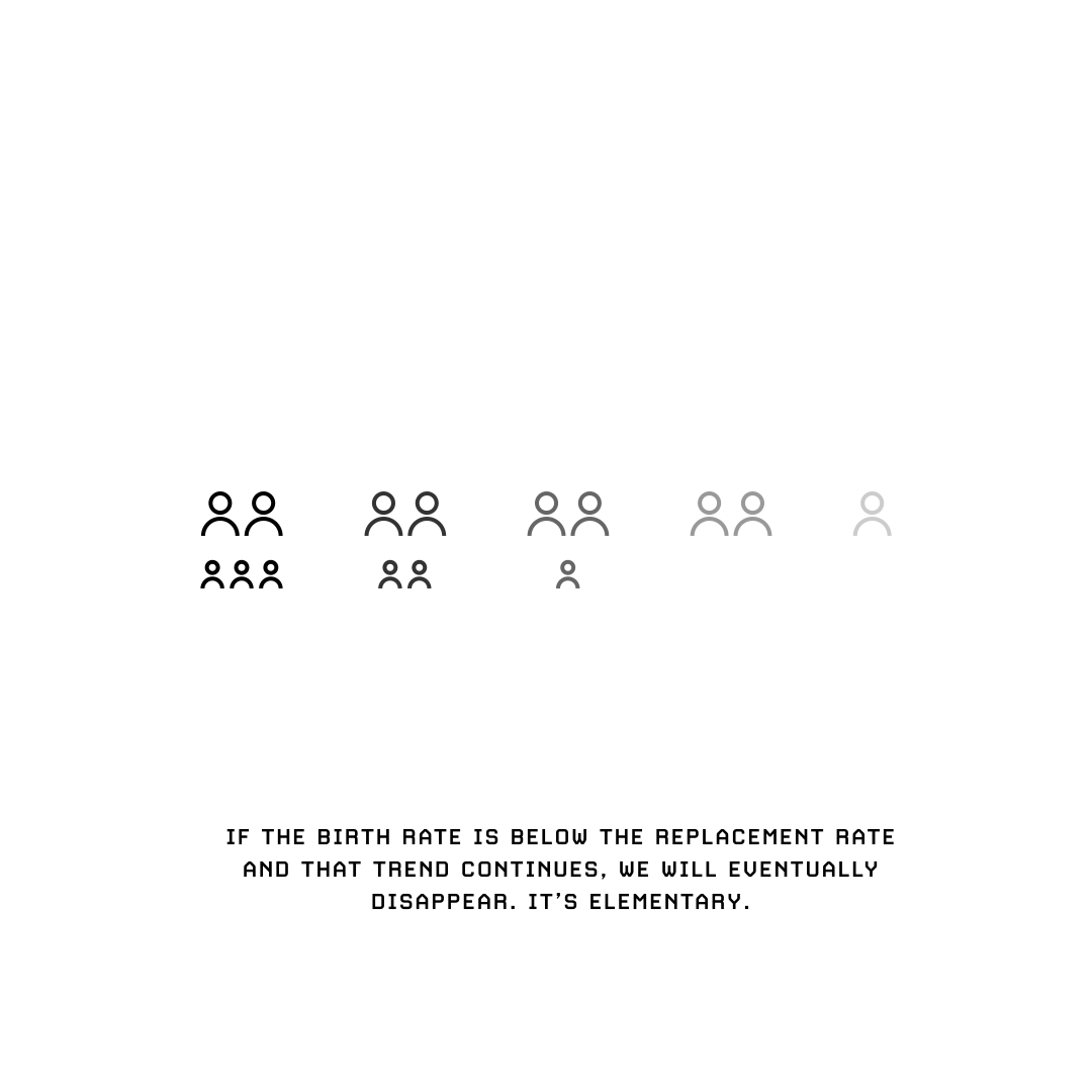 If the birth rate is below the replacement rate and that trend continues, we will eventually disappear. It’s elementary.